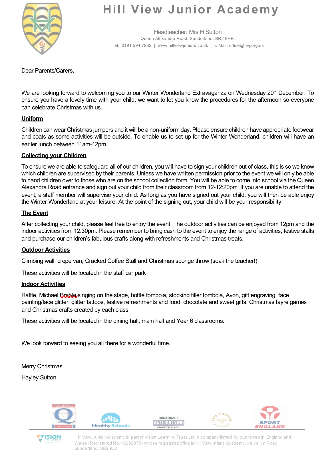 Please find attached information about the Winter Wonderland on Wednesday 20th December.